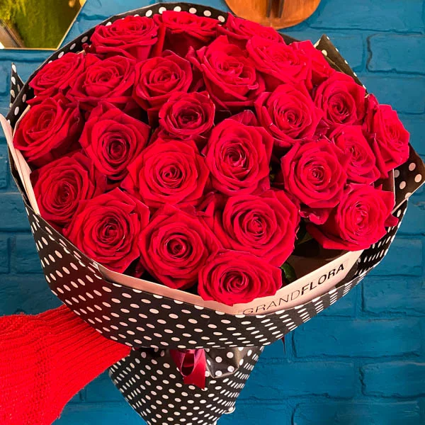 Идеальный подарок для любимой! Букет из красных роз классный, крупные бутоны с насыщенным ароматом. Доставили вовремя, упаковка была аккуратной и элегантной, да без горошка, но это даже лучше. Моя девушка пришла в восторг, и я сам не ожидал, что цветы окажутся настолько красивыми!
